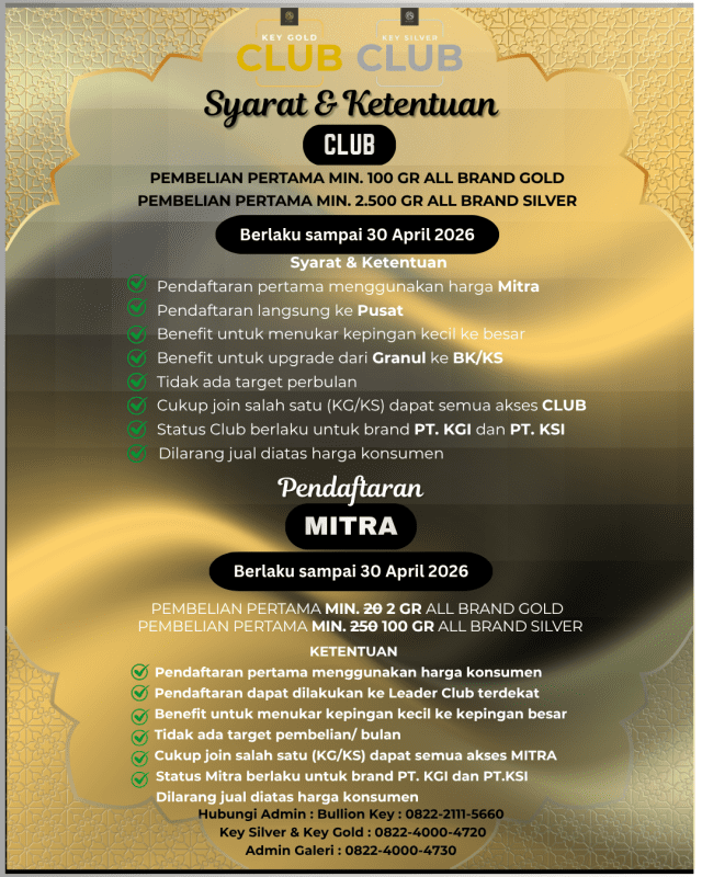 - PROMO KHUSUS MITRA KEY SILVER CUKUP BELI 5 GR KEY GOLD/BULLION GOLD SUDAH JADI MITRA KEY GOLD